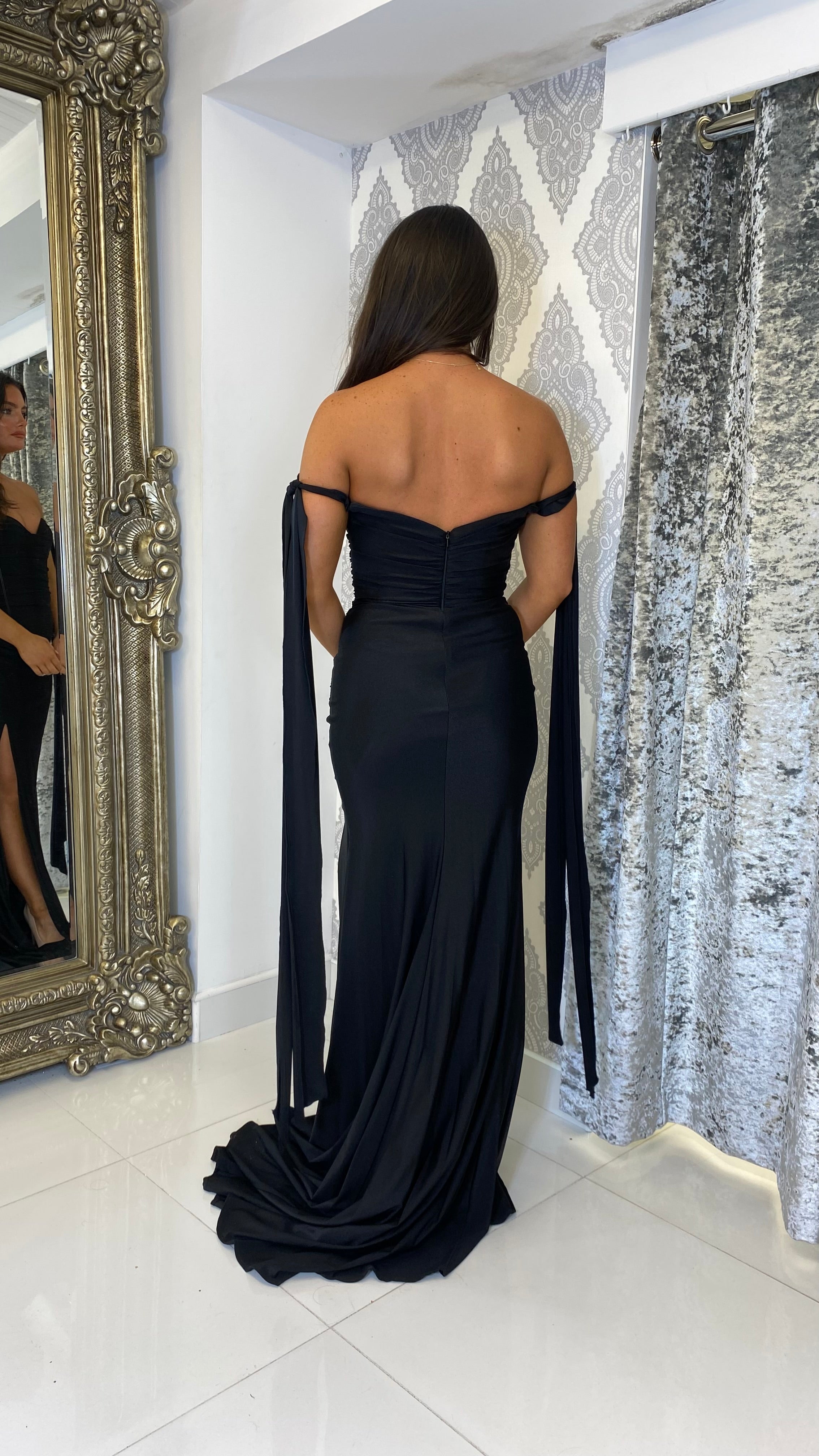 Stunning elegance with our Black Tie Arm Full Length Evening Gown.